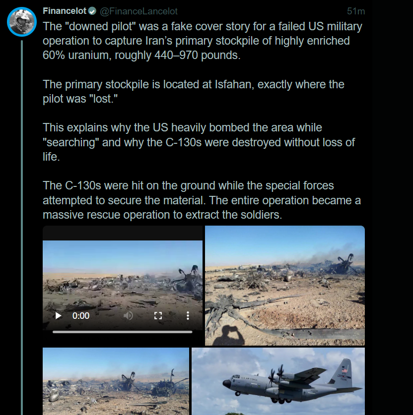 The Shah posted a message for the IRGC commanders requesting that they surrender before all their power plants are destroyed.Recall how the last time Trump threatened to blow up their power stations, the Shah asked Trump, not the IRGC, to hold back. The Gulf States did the same.That is not occurring this time. It seems like they are all on the same page: Trump has run out of patience, and it's up to the IRGC to decide whether they want to make a deal before the deadline or lose everything.