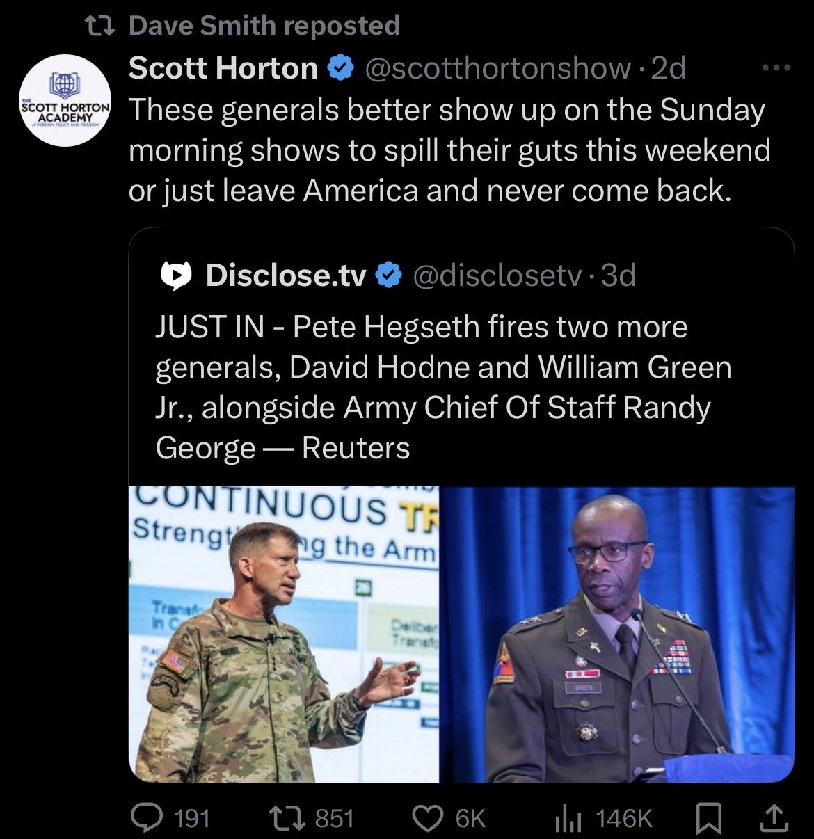 Hegseth has fired vance supporter Army Chief of Staff Randy George because Hegseth determined that vance supporters do not align with President Trump’s vision.