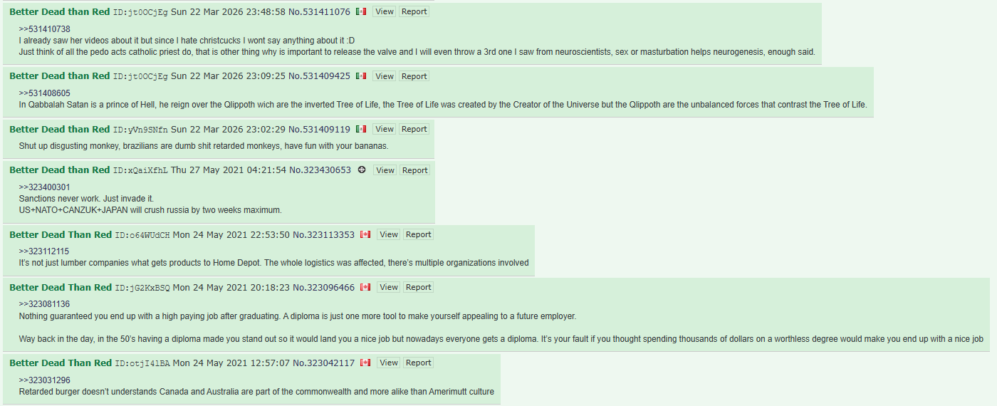 >>532504762That is why I am here, I cant tolerate reading messages in JewTube, this goblinos are dumber every day, I need to vent dawn here, I cant be racist in social media but I can be here and I love that little free speech we get here.