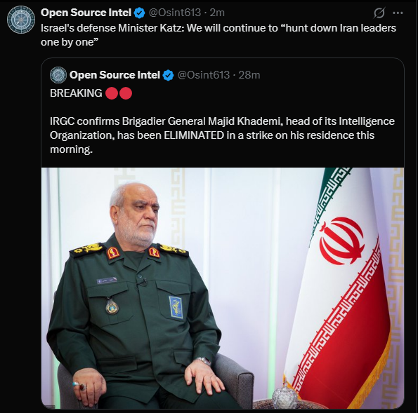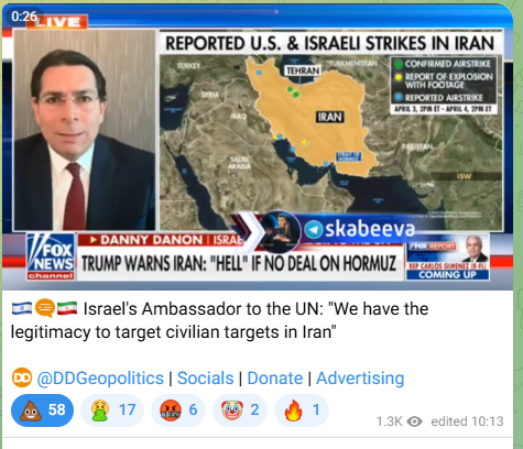 Previous: >>532510082▶Happening Now:>Trump praises Allah (on Easter, of all days) and "delays" his ultimatum a 5th time, to 7 April, 8 pm EST. (Truth Social)>Trump crashes out on Truth Social: "Open the Fuckin' Strait, you crazy bastards [...] Praise be to Allah." - https://truthsocial.com/@realDonaldTrump/posts/116351998782539414>Physical Brent Crude Hits $141, Highest Level Since 2008 Financial Crisis (CNBC)▶Day 39>Images show destroyed US aircraft in Iran (Al Jazeera)>US President Trump says the 2nd American F15E crew member missing since friday is “now safe and sound” and confirms that he's a colonel>Iran Thwarts US Rescue Mission, Downs Multiple Aircraft near Isfahan (Tasnim News)>Countries across the Gulf from Iran could face radioactive fallout if the US launches a more intense strike on Iran’s Bushehr nuclear facility, a Middle East expert and former US negotiator warns>Iran says Iraqi ships exempt from all restrictions in the Strait of Hormuz>Indonesia receives bodies of three peacekeepers killed in southern Lebanon>Iran says US-Israeli attacks have killed five people and wounded 170 others at the Mahshahr Petrochemical Zone▶WARNING:>Do not trust any "happenings" without link/proof▶Oil:>https://oilprice.com/oil-price-charts/>WTI $111.54>Brent Crude $109.03>Dubai Crude $128.52▶Kino:https://files.catbox.moe/20lpu8.mp4https://files.catbox.moe/jv7tdp.mp4https://files.catbox.moe/smmsfw.mp4https://files.catbox.moe/x0fbgv.mp4▶Live-streams:https://www.youtube.com/watch?v=4E-iFtUM2kk https://www.youtube.com/watch?v=TdcrT5OcS9c https://www.youtube.com/watch?v=53G-Oy4r6M4 ▶Telegram channelshttps://rentry.org/tgnews▶Israel Rocket Alertshttps://www.tzevaadom.co.il/en/▶Air Traffichttps://www.flightradar24.com/https://flightaware.com/livehttps://globe.adsbexchange.com▶Maritime Traffichttps://www.marinetraffic.com/https://www.vesselfinder.com/