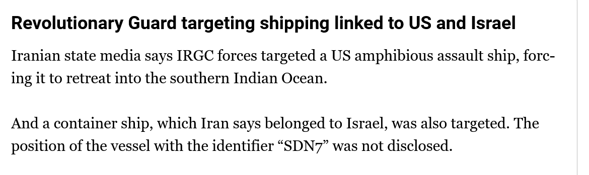 >Iran says Iraqi ships exempt from all restrictions in the Strait of Hormuz