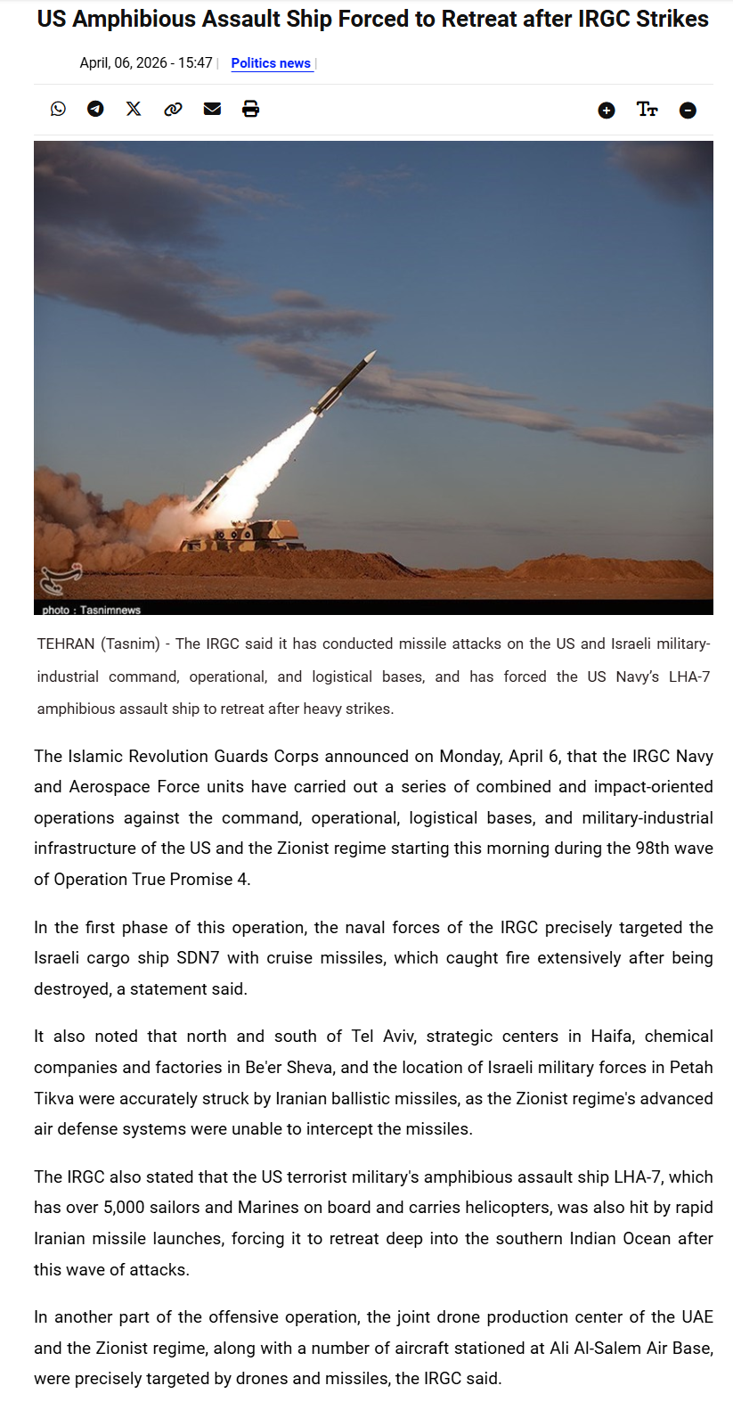 It's not propaganda, I'm trying to post factual news, tasnim has been relatively reliable