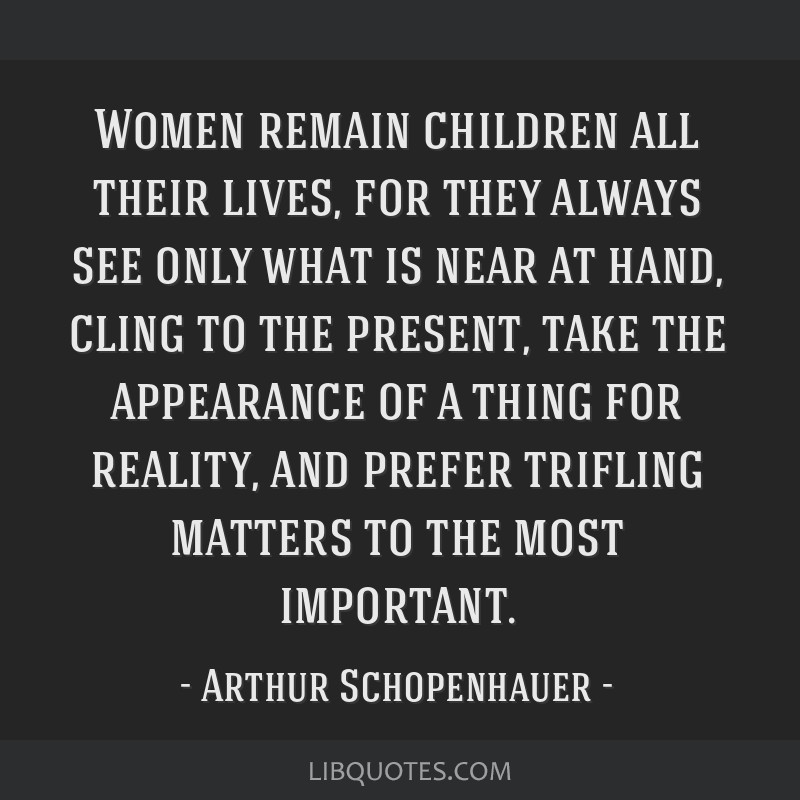 >>532557302Also Schopenhauer: I'm a manlet with no shoulders and i cry all the time with my pessimistic worldview, but women are the children.