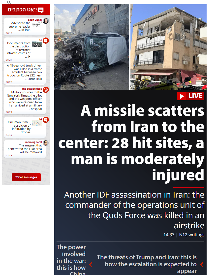— IRGC Navy struck the Zionist-linked container ship SDN7 with a cruise missile, setting it ablaze. Ballistic missiles also hit northern and southern Tel Aviv, key sites in Haifa, chemical facilities in Be’er Sheva, and Zionist army positions in Bat Hefer, bypassing air defenses.