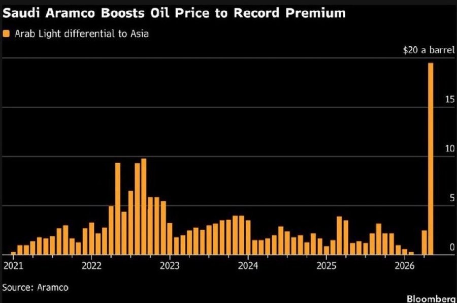 Saudi Aramco raised its oil prices for delivery to Asia. Someone is getting salty lol.NB this is the differential on top of the regular price.