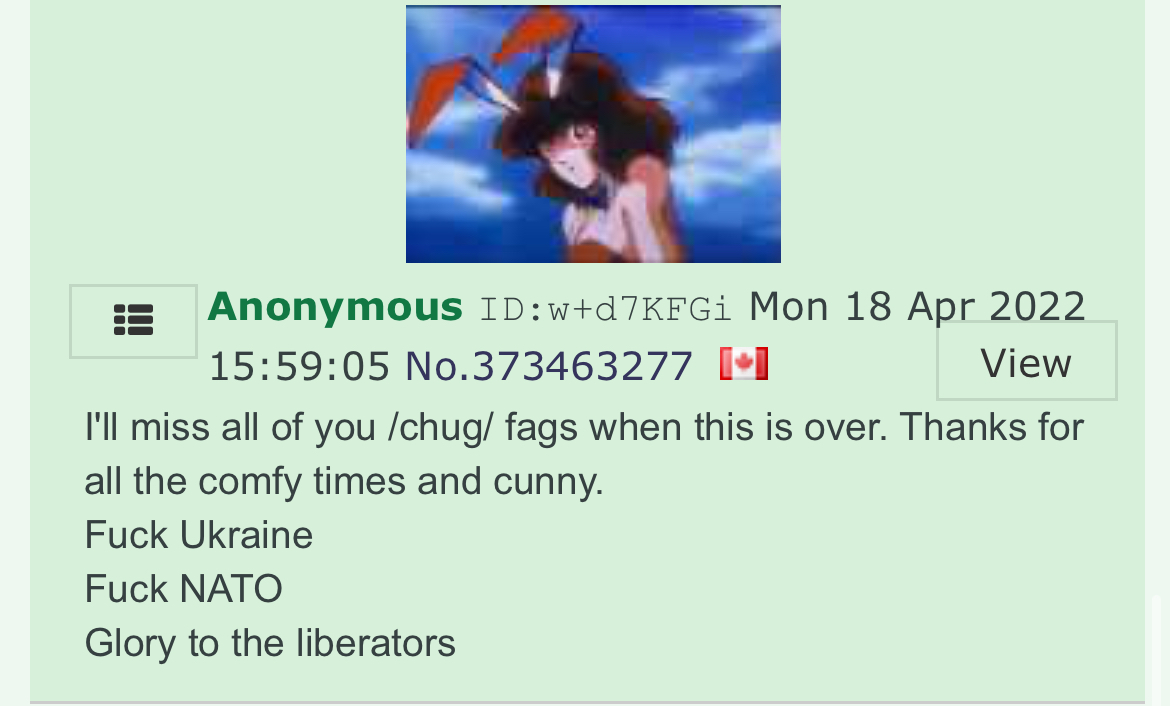 >>532540093>russia evil! putin is hitler! glory to ukraine>that's it buddy, you're going back to ukraine>noooo not ukraine! my life is ruined... i amost had boobies