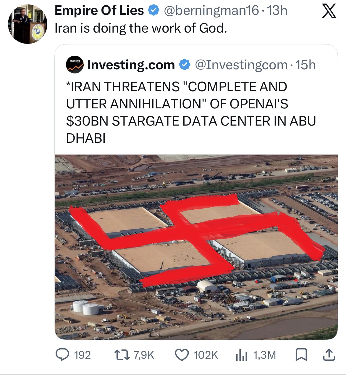 >Iran is about to blow up OpenAi data centers in UAE