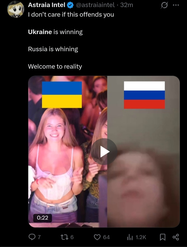 >>532569381being an 85 IQ shitskin nation with dead leader and new one in a comma is winning according to this guynow i know why he thinks russia is winning XDDDD