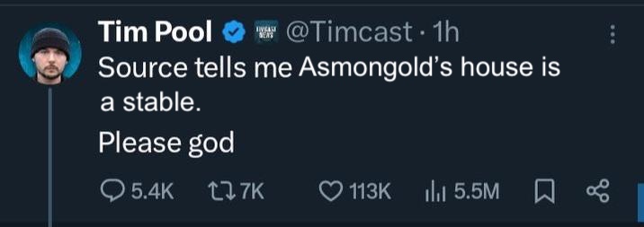 But I have free time and enough boredom to listen to 8 hours of streamer nonsense. It's a rare privilege I enjoy. Most of you have to go to work and pay bills and raise kids and fight with annoying women, so you don't have the time to watch 8 hours of Asmongold a day to confirm if any of this is even true.