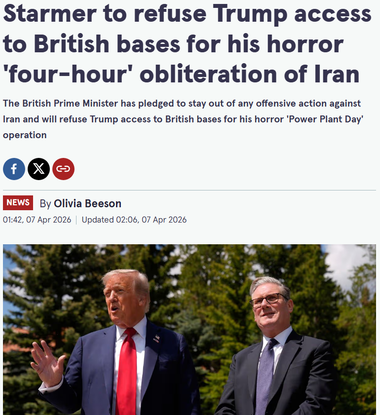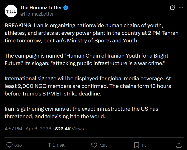 Prev: >>532574814▶RECENT:>Mahdi Mohammadi, strategic advisor to the Iranian Parliament speaker: "It is Trump who has about 20 hours to either surrender to Iran or his allies will return to the Stone Age. We will not back down!".>Senator Tom Cotton announces Arkansas’ 142nd Field Artillery Brigade is deploying to the Middle East.>Iranian missile launches to Negev, southern Israel.>King Fahd Causeway, connecting Bahrain and Saudi Arabia, seems to be closed for traffic, according to Google Maps.>Massive US/Israeli airstrikes on the Mehrabad International Airport in western Tehran, Iran.>Saudi Basic Industries Corporation (SABIC), the world’s fourth-largest petrochemical manufacturing company, was struck by Iranian missiles.>Iranian ballistic missiles struck Al-Jubail Industrial City, Saudi Arabia.▶Day 40>Yet another F-35 makes an "emergency landing" in Iraq near Kuwaiti border.>Trump praises Allah (on Easter of all days) and "delays" his ultimatum a 5th time, to 7 April, 8 pm EST. (Truth Social).▶WARNING:>Do not trust any "happenings" without link/proof▶Oil:>https://oilprice.com/oil-price-charts/>WTI $113.29>Brent Crude $110.22>Dubai Crude $128.52▶Thread Theme:https://files.catbox.moe/d9bvub.webm▶Kino:https://files.catbox.moe/20lpu8.mp4https://files.catbox.moe/jv7tdp.mp4https://files.catbox.moe/smmsfw.mp4https://files.catbox.moe/x0fbgv.mp4▶Live-streams:https://www.youtube.com/watch?v=4E-iFtUM2kkhttps://www.youtube.com/watch?v=TdcrT5OcS9chttps://www.youtube.com/watch?v=53G-Oy4r6M4▶Telegram channelshttps://rentry.org/tgnews▶Israel Rocket Alertshttps://www.tzevaadom.co.il/en/▶Air Traffichttps://www.flightradar24.com/https://flightaware.com/livehttps://globe.adsbexchange.com/▶Maritime Traffichttps://www.marinetraffic.com/https://www.vesselfinder.com/