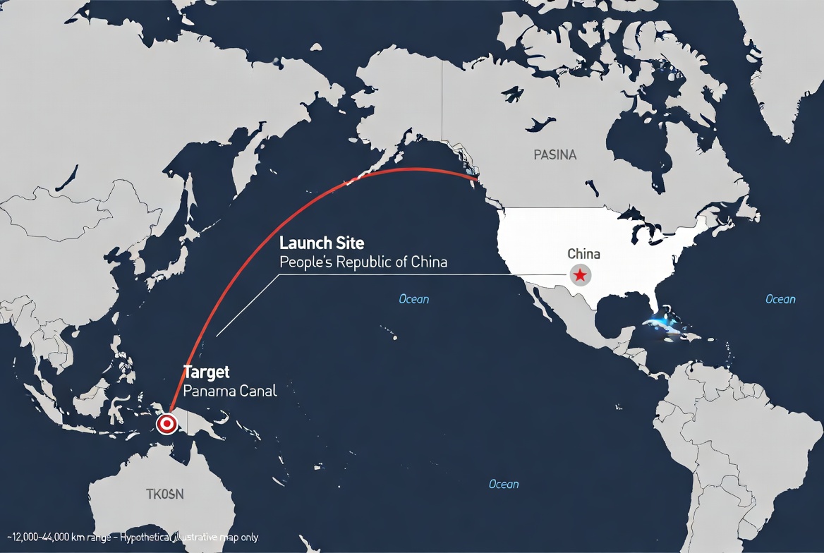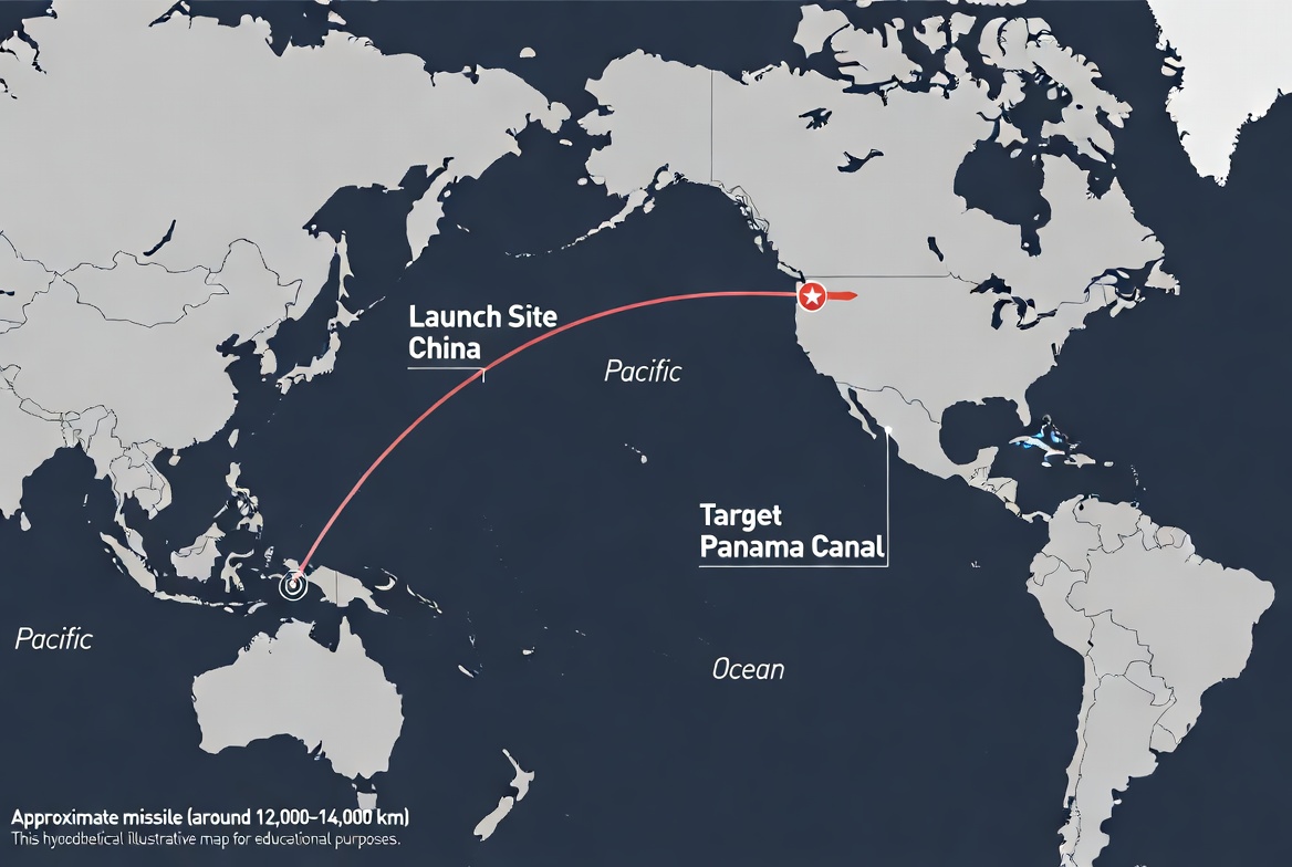 >make an image of map showing the flight path of and ICBM launched from China to the Panama CanalWhy is Grok so stupid?