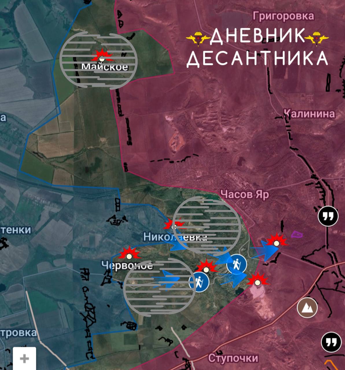 >Chasov Yar direction.>The situation in Chasov Yar continues to deteriorate, enemy groups are penetrating the outskirts of the city and entrenching themselves in the pond area. Also, groups of the Armed Forces of Ukraine (AFU) have been spotted trying to move behind the Central Pond to the bunker.>In the Shevchenko microdistrict, enemy positions in buildings are being detected, which our drone operators are striking at.>A little further north, in the Maysky area, positional battles are taking place, and the village itself is in the grey zone, and it has not been possible to entrench there.>Understanding the enemy's entire plan to stretch the front line and draw our reserves away from Konstantinovka, the soldiers of the Russian Armed Forces are gradually breaking the enemy's defenses, focusing on strikes on logistics.Bad year for Russia
