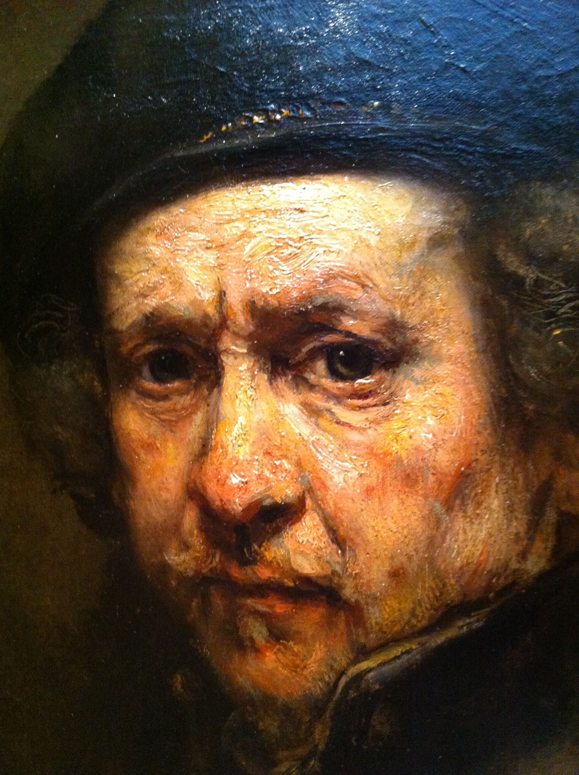 that's because it's a low-res scan. if you saw this painting in person, the piercing look in her eyes, the detail, would stagger you. it looks more human than real people, the feeling it evokes