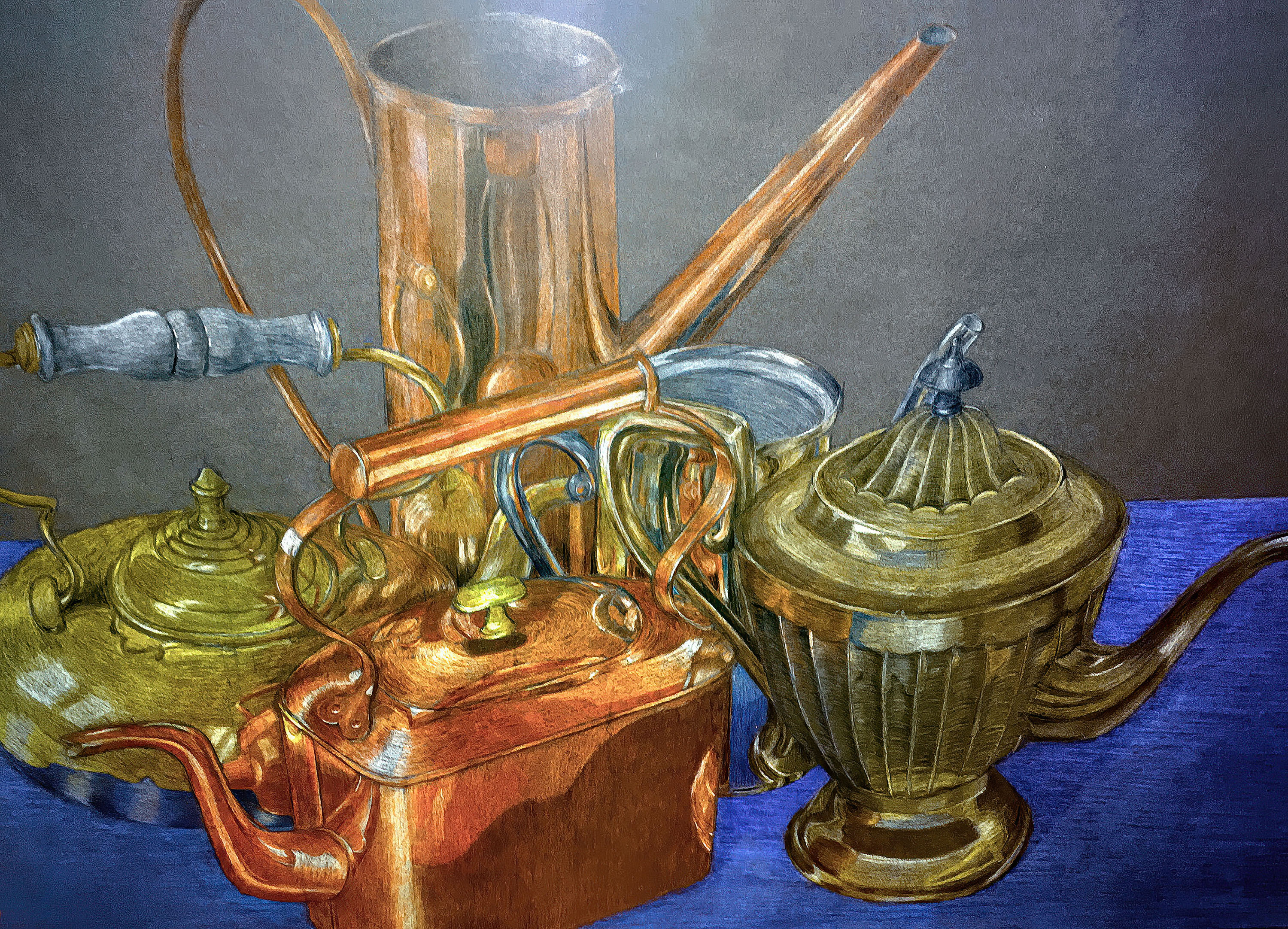 I drew these kettles with coloured pencils. One on the right is a bit wonky, my apologies.