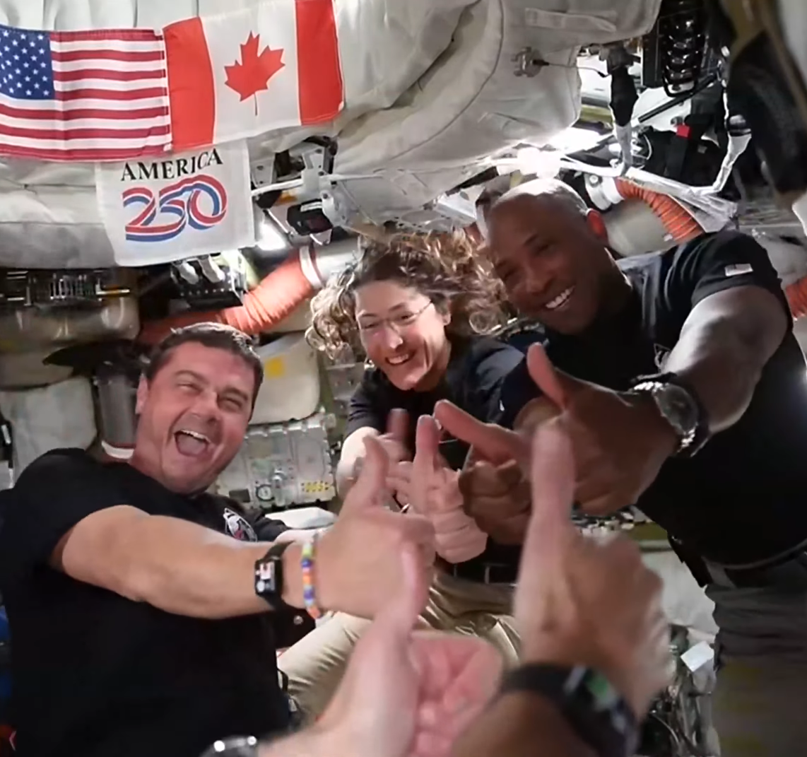 >STATUSThe Orion spacecraft is now Earthbound, returning from the moon. It is less than 251,600 miles away from Earth.Mission-elapsed time (MET): ~T+005/07:42:00>TOILET STATUSGO>THE MISSIONArtemis II NASA's first crewed mission to the Moon in over 50 years. The flight is testing systems for future lunar landings.>MILESTONES~MET 005/03:50:00 https://youtu.be/YTsp-u_cM4g DJT speaks with crewMET 005/00:27:39 Max distance from Earth - 406,770 km (252,756 mi)>UPCOMINGMET 005/18:52:12 Lunar SOI exitMET 006/01:28:48 RTC-1 (Return trajectory correction burn)>Livehttps://www.youtube.com/watch?v=m3kR2KK8TEshttps://www.youtube.com/watch?v=6RwfNBtepa4>Trackershttps://www.nasa.gov/missions/artemis-ii/arowhttps://artemis-ii-tracker.comhttps://issinfo.net/artemis.html>Schedulehttps://www.nasa.gov/wp-content/uploads/2026/01/artemis-ii-overview-timeline-public-final.pdf>The CrewReid Wiseman (Commander)https://www.nasa.gov/people/reid-wisemanVictor Glover (Pilot)https://www.nasa.gov/humans-in-space/astronauts/victor-j-gloverChristina Koch (Mission Specialist)https://www.nasa.gov/people/christina-kochJeremy Hansen (Mission Specialist)https://www.asc-csa.gc.ca/eng/astronauts/canadian/active/bio-jeremy-hansen.asp>Photoshttps://www.nasa.gov/gallery/artemis-ii-astronautshttps://www.nasa.gov/gallery/journey-to-the-moonhttps://www.nasa.gov/gallery/artemis-ii-launchhttps://www.nasa.gov/gallery/artemishttps://www.flickr.com/photos/nasa2explore/>Additional Readinghttps://www.nasa.gov/humans-in-space/orion-spacecraft/https://www.nasa.gov/mission/artemis-iihttps://en.wikipedia.org/wiki/Artemis_IIhttps://en.wikipedia.org/wiki/Orion_(spacecraft)Previous thread: >>532578601