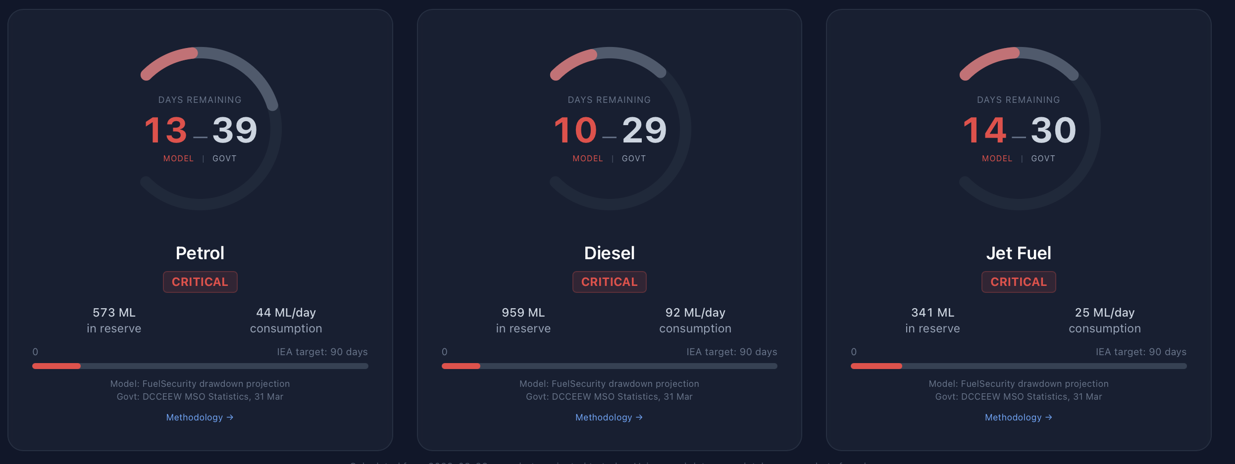 >>532597542One servo down the road from me has been out of diesel for a week, and its a Caltex which is weirder.I don't believe we will run out fuel in 10 days also. I think we will run out of spending power before we run out fuel.I noticed they did something with check petrol website. Yesterday or Sunday 300 new servos and it went from 1100 outages down to 400.