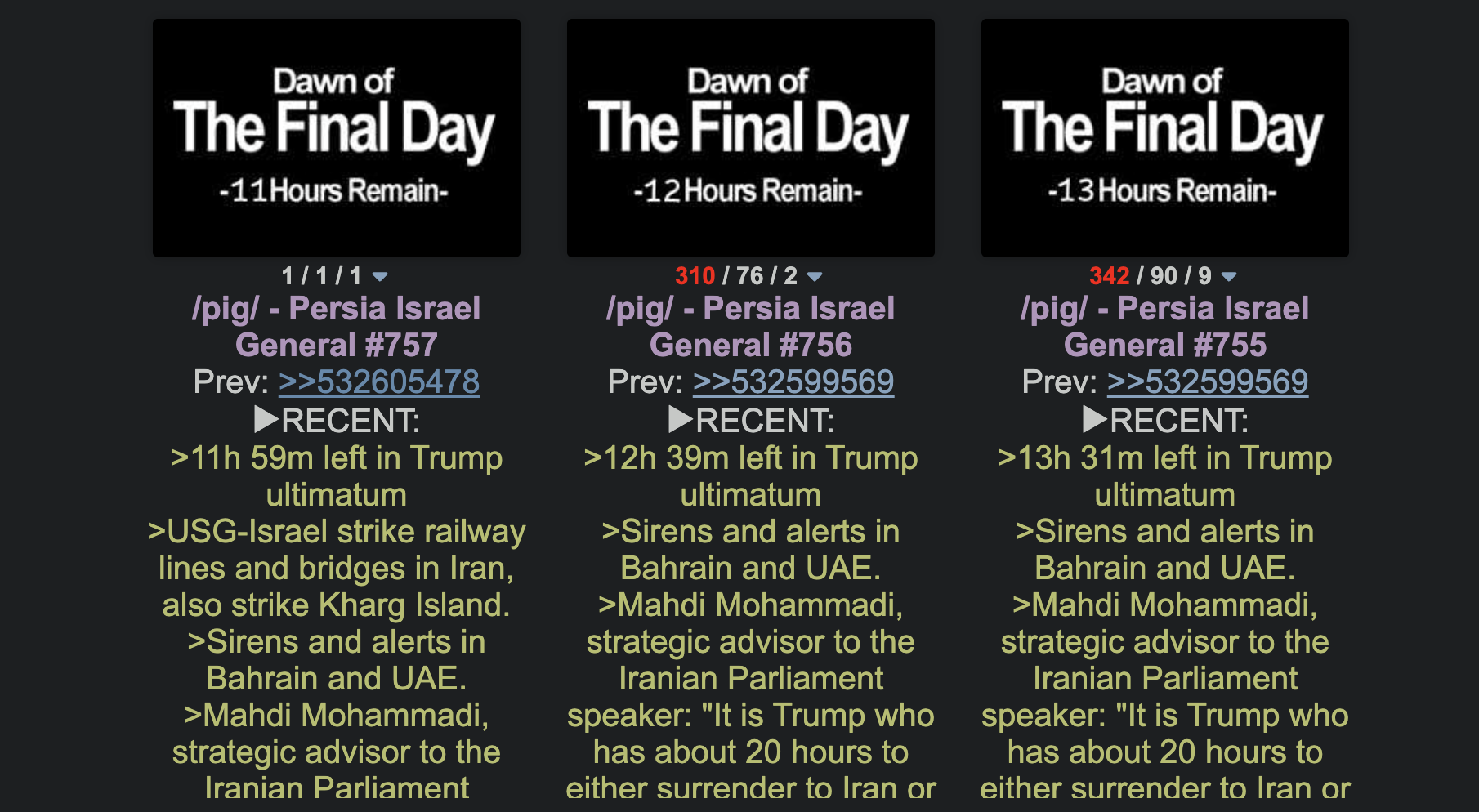 >Mahdi Mohammadi, strategic advisor to the Iranian Parliament speaker: "It is Trump who has about 20 hours to either surrender to Iran or his allies will return to the Stone Age. We will not back down!".