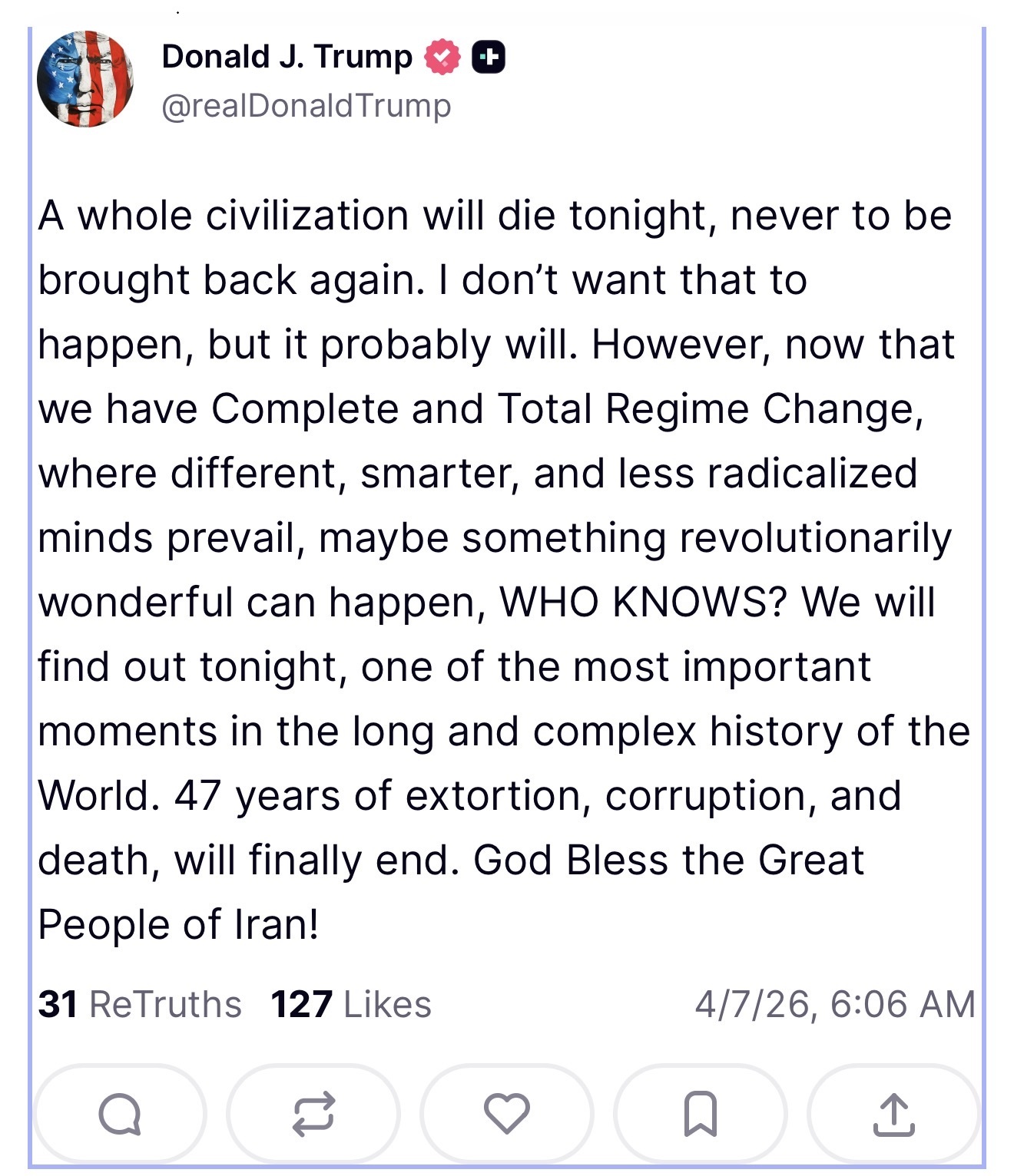 It's morning in USA and daytime in Iran.I am unironically nervous for Iran, because USA just bombed multiple universities and bridges.Trump and CO are Zionists and on Epstein list. They have no problems committing war crimes