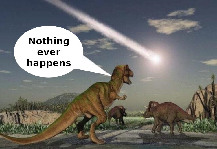 >>532609952>Nothing ever happensI presume the only thing in your life that would count as a serious happening is if mom switched out the chicken-tendies for dino-nuggies.