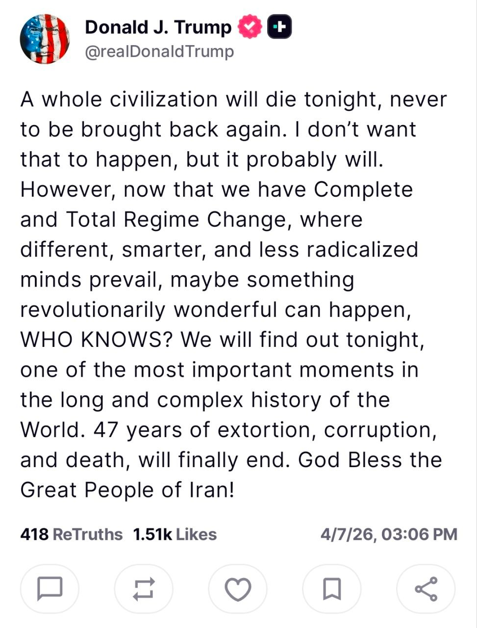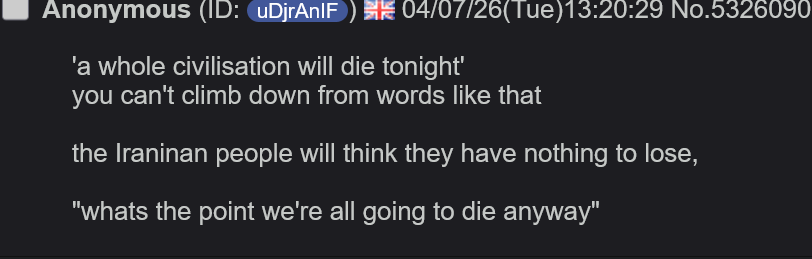 >>532612508>a president threatens to destroy a whole civilizationi'm tired bros... what the fuck is this timeline