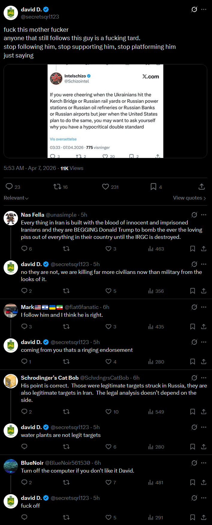 >>532614610literally just more mindless drivelyou are mentally ill, i don't care about your fantasies, i was discussing iran's actual strategic options and counterfactualspeople like you belong in camps