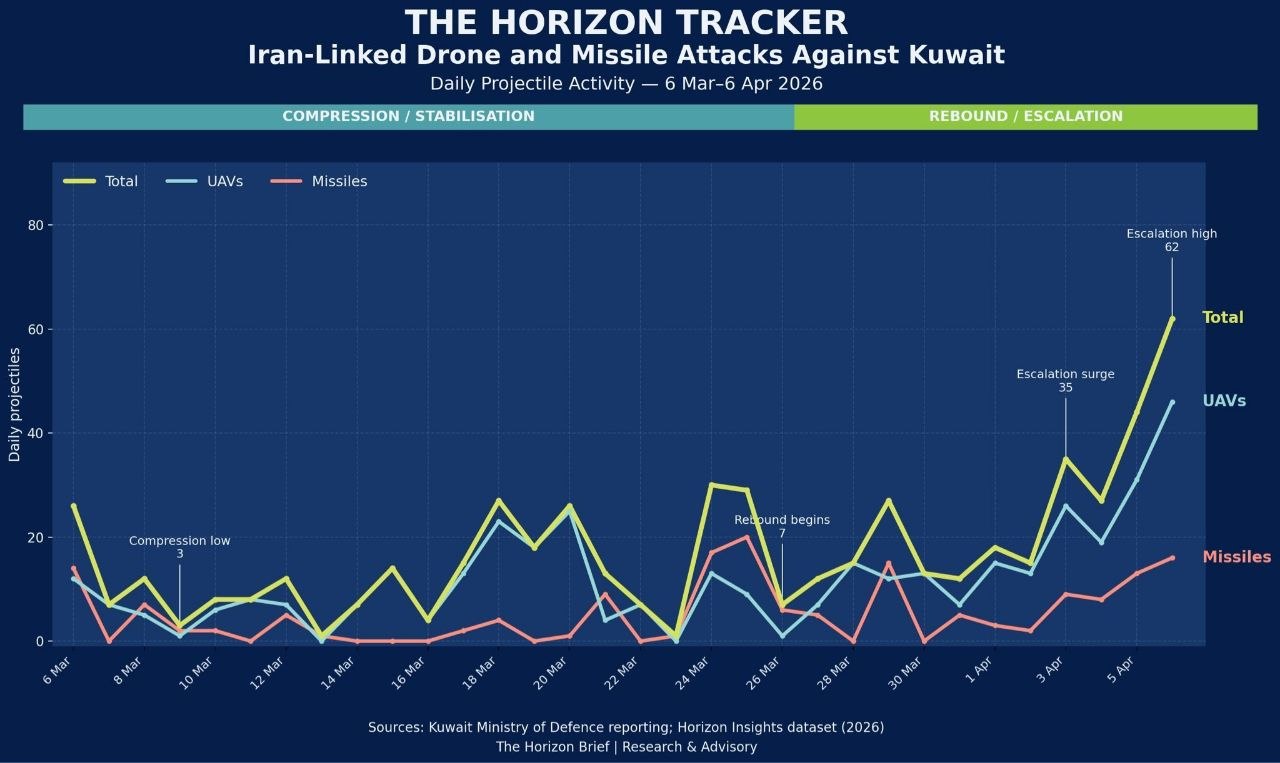 Kuwait will be the first gcc niggers to fall> Yesterday, Kuwait recorded 62 missile and drone attacks, the highest daily total in a month. Over 37 days, 1,151 projectiles were recorded: ~68% drones, ~30% ballistic missiles, and ~1% cruise missiles.