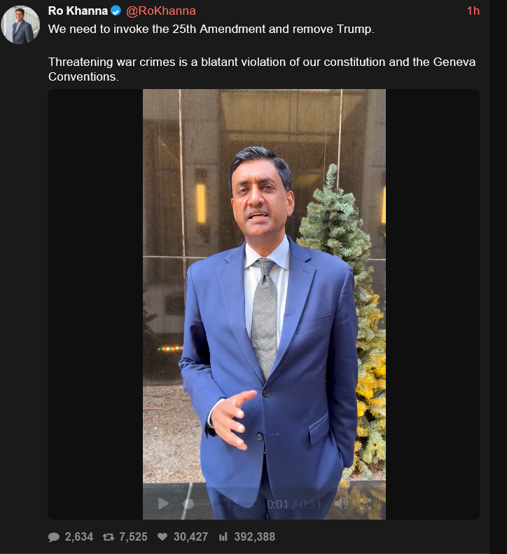 Ro Khana and Thomas Massie start 25th amendment procedure against Trumphttps://xcancel.com/RoKhanna/status/2041540173167489321#mThe hour of chosing has come.