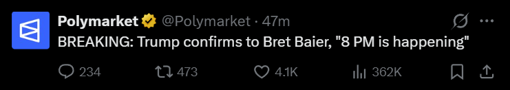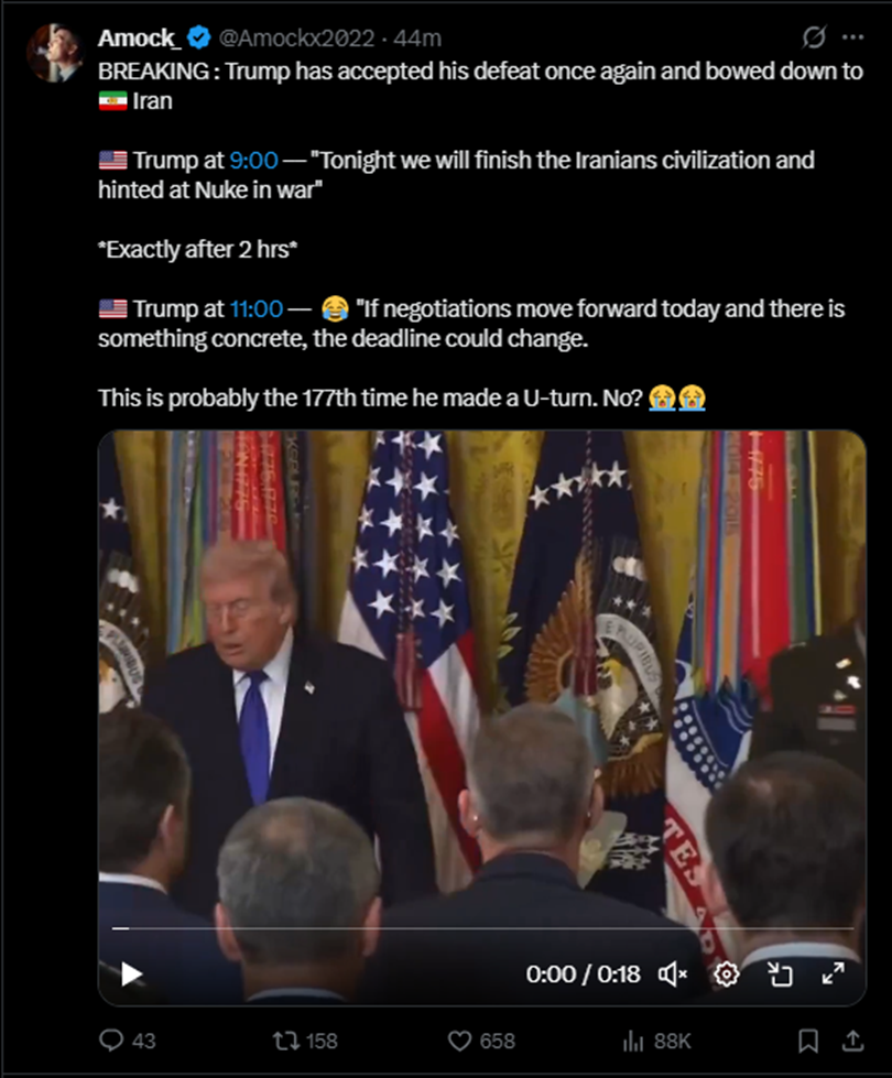 >>532628248>Trump told Fox News that based on progress in negotiations, he may extend his deadline to escalate against infrastructure targets in Iran.>Trump told Fox News that based on progress in negotiations, he may extend his deadline to escalate against infrastructure targets in Iran.>Trump told Fox News that based on progress in negotiations, he may extend his deadline to escalate against infrastructure targets in Iran.https://x.com/gbrew24/status/2041545097557250121?s=20>Axios on a US official: There is definitely talk of a ceasefire>Axios on a US official: There is definitely talk of a ceasefire>Axios on a US official: There is definitely talk of a ceasefirehttps://x.com/WW3_Monitor/status/2041556487864983733?s=20