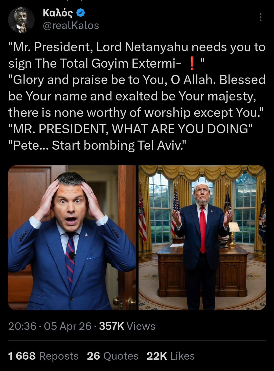 >The Revolutionary Guard:>At 3:30 am Tehran time, the regional leaders will tell him: You damn fool, Trump, end this damn war!https://t.me/hanzpal20/120514