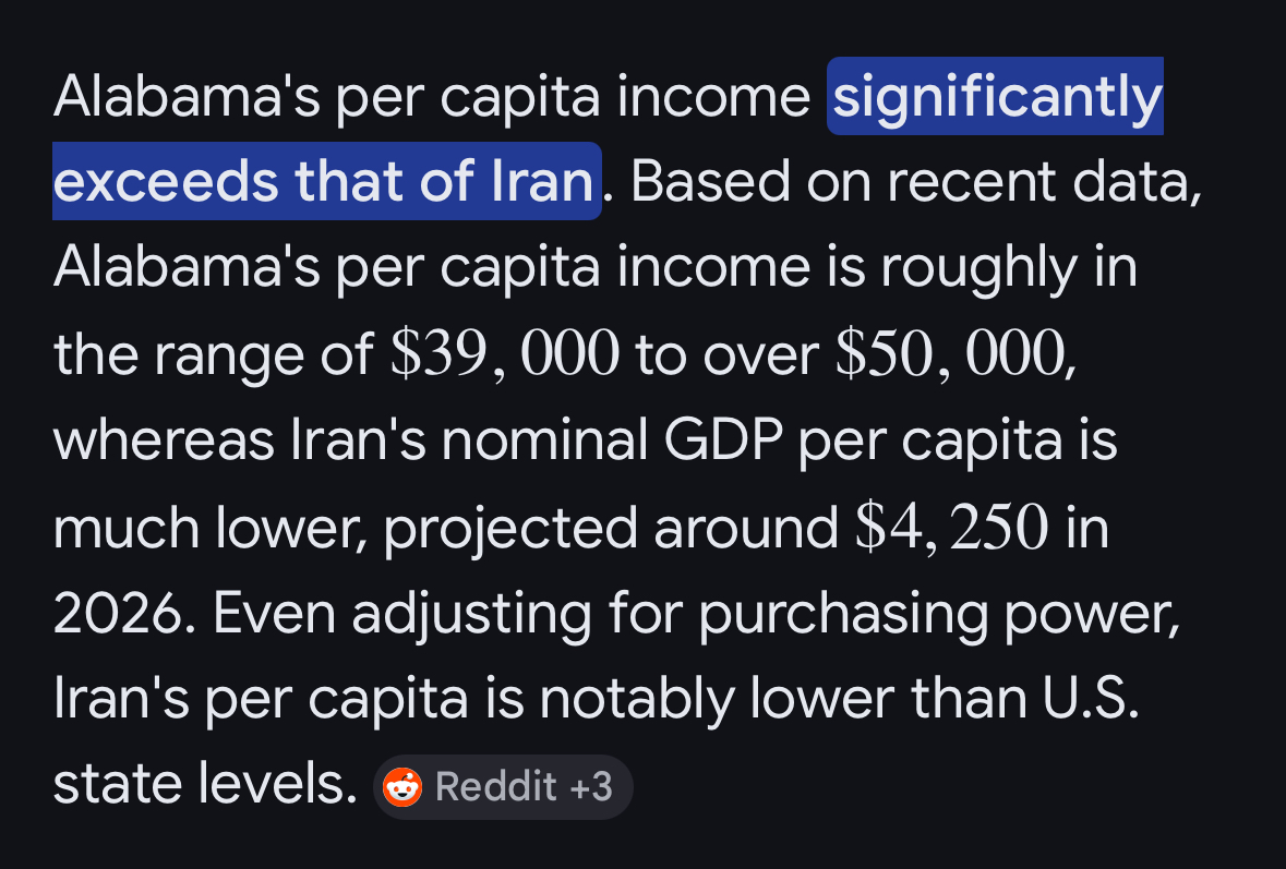 >>532632393>mississippi >alabama Have more wealth than 90% of planet earth.