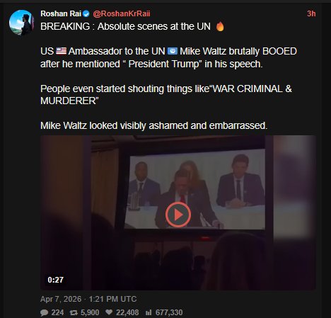 the world hates america for her crimesUN boos american crimes against humanityhttps://xcancel.com/RoshanKrRaii/status/2041506684858994799#m