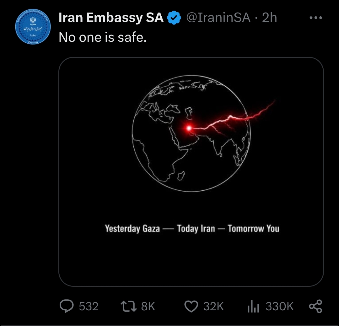 That is the embassy in South Africa. You gonna bomb south Africa too?