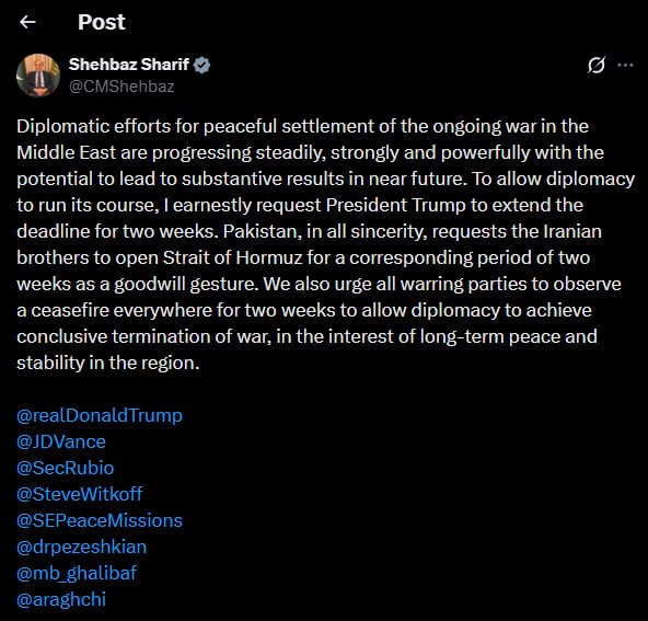Dogovornyachok>Good news are expected soon from both sides after Pakistan asked Trump to extend the deadline for Iran to open the Strait of Hormuz, - CNN citing a source.