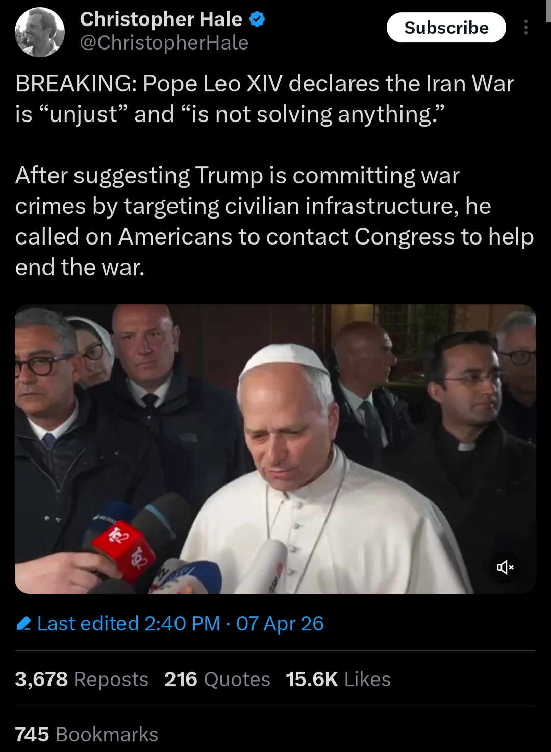 >>532656855Based Pope making Epstein "Christians" seethe