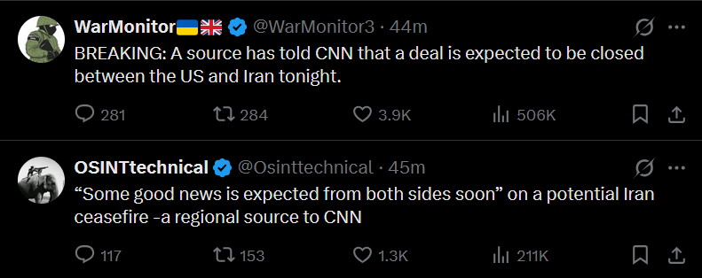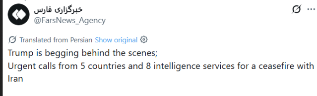 Watch Trump accept a ceasefire that doesn't include a full re-opening of Hormuz. Total US humiliation HAHA. Most Bitter taco of all time.
