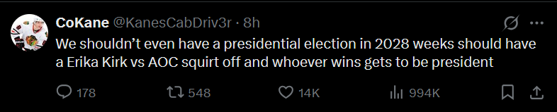 >>532660598Erika Kirk is actually involved in politics in a very traditional way a woman would get involved in politics: Her husband's death. She continues her husband's legacy, in fulfillment of her role as a woman, and this itself is an anti-feminist action and a direct affront to the leftist ideology, not just in that she is a right-wing figure but in that her whole entry into the right-wing political sphere occurred in a manner traditionally befitting a woman in an anti-feminist, patriarchal worldview.
