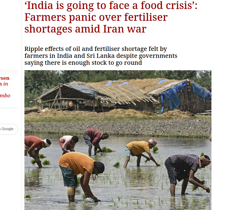 The United Nations released a report today saying that over 150+ million Africans and Indians will die of starvation if the fertilizer does not go through the Strait of Hormuz and flow into India and parts of Africa that in some cases get more than 97% of their fertilizers from that route.This is just awful news! Potentially hundreds of millions of dead Indians in India and Africans in Africa!