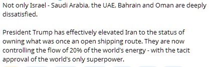 >Iran says the U.S. agreed to:>1—Commitment to non-aggression>2—Continuation of Iran’s control over the Strait of Hormuz>3—Acceptance of uranium enrichment>4—Lifting of all primary sanctions>5—Lifting of all secondary sanctions>6—Termination of all UN Security Council resolutions>7—Termination of all Board of Governors resolutions>8—Payment of compensation to Iran>9—Withdrawal of U.S. combat forces from the region>10—Cessation of war on all fronts, including against Hezbollah in LebanonInsanely big if true, this would be a bigger defeat than Vietnam, if only because Vietnam didn't end the war by controlling the flow of 1/4th of the planet's oil.But I still feel they are being duped, again.