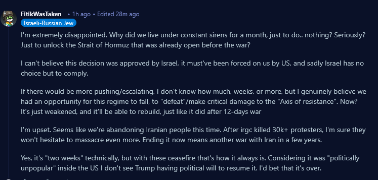 Lmao these shills are completely seething hahaha nor do they understand that this ceasefire is for only 2 weeks hahaha!! THEY TRULY BELIEVE IRAN WON AFTER TAKING THE BIGGEST BEATING IN HISTORY HAHAHA