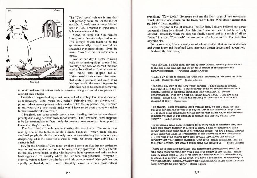 >>532698712Damn, Larson trolled the entirety of two and a half generations And now two more generations have memed cow tools into the collective consciousness seemingly for perpetuity Is this the greatest shit post of all time?!