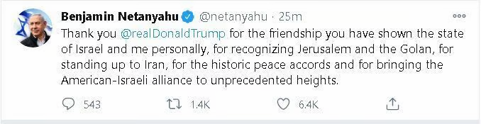 If he leaves Israel holding the bag and pulls all our troops out of the Middle East he will be a hero for all time. Let's see. Anything can happen.