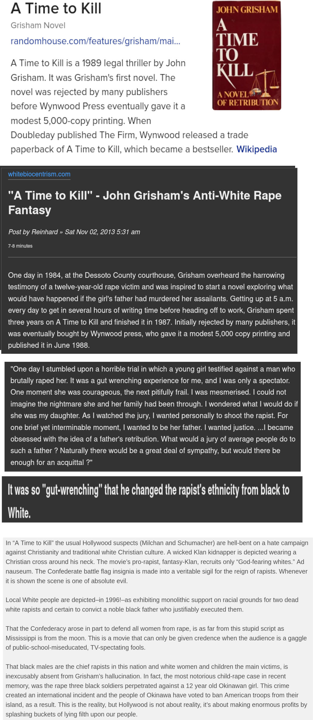 >>532686879judges and lawyers must get PTSD from being forced to watch shit like this for hours every day.Grisham wrote a book after watching a horrific case of child rape