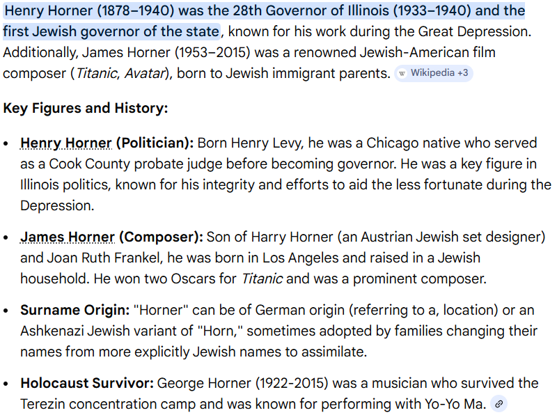 >horner is a small hat last name