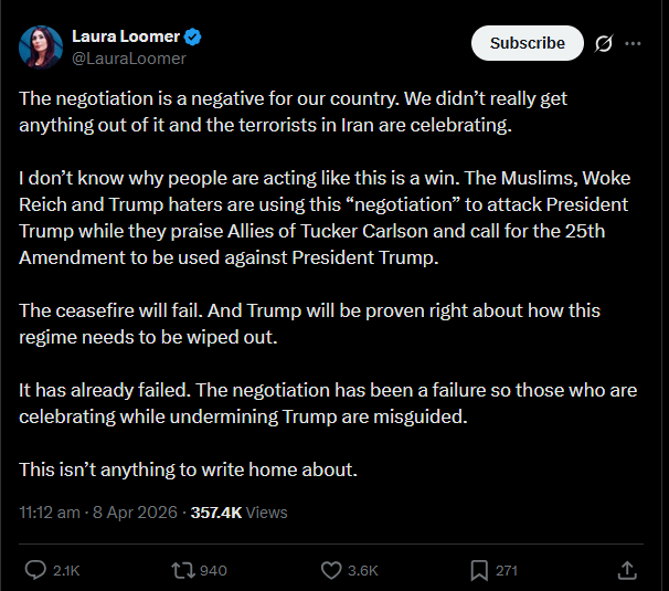 LMAO everyone who supported this war is utterly seething about the ceasefire, and all the people who didnt support the war have already turned on trumpABSOLUTE KINO