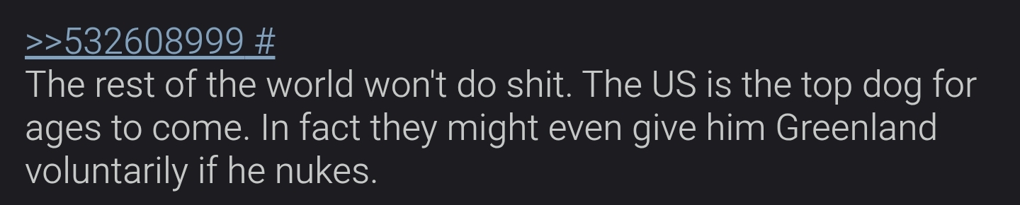 Well, I think one effect of Operation EPIC Fury is that everyone will realize they have to be friends with China if they want to survive. Mutts can't save them.
