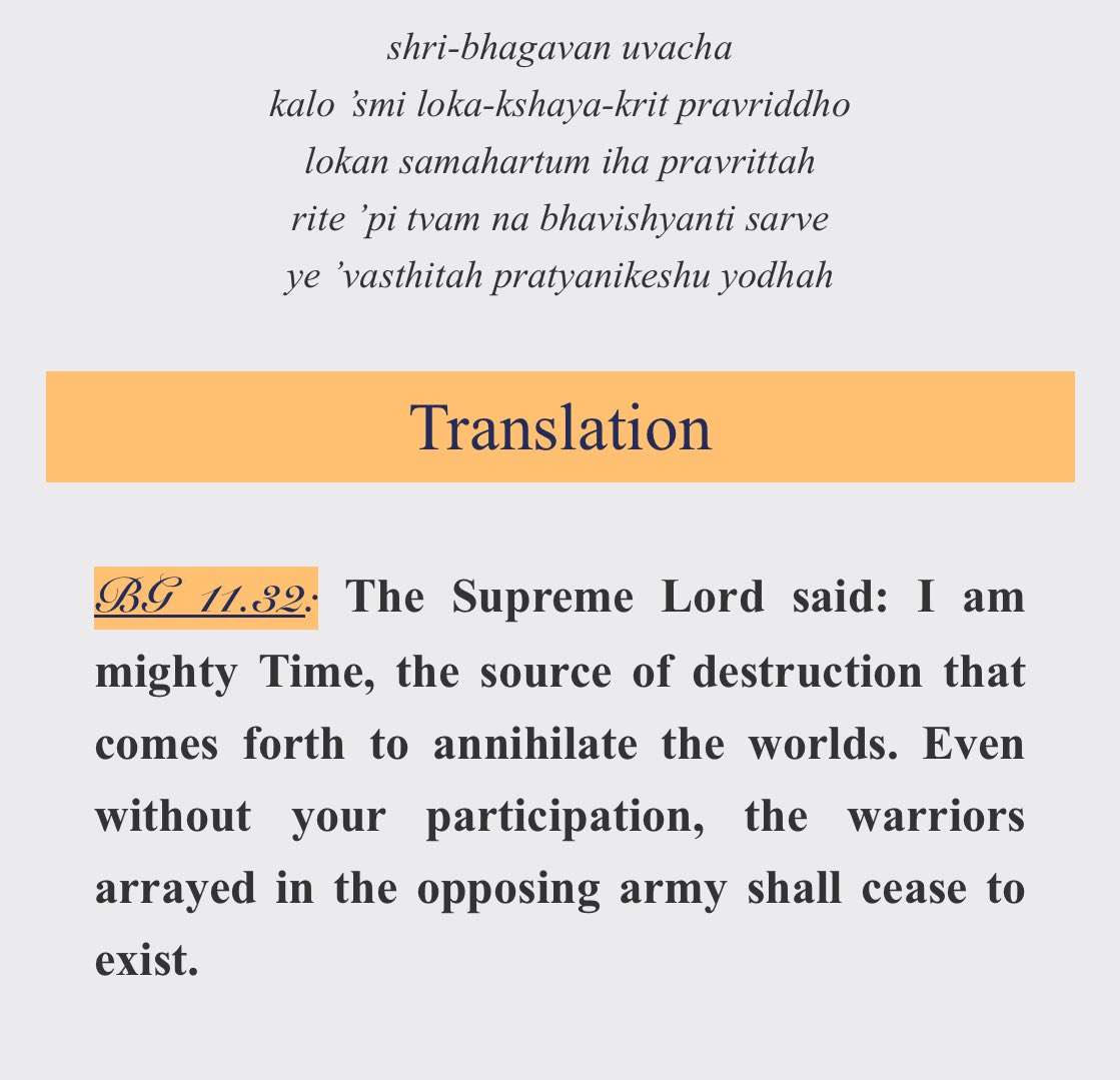 "Never was there a time when I did not exist, nor you, nor all these kings; nor in the future shall any of us cease to be."- Krishna to warrior Arjuna, in the Bhagavad-Gita10 minute video of the Bhagavad-Gita story - God stops time before a battle, and explains to Hindu warrior Arjuna what life is all about - can take a few seconds to load as the video is on an archive sitehttps://web.archive.org/web/20150630014626/https://www.youtube.com/watch?v=CJ205esn7qE