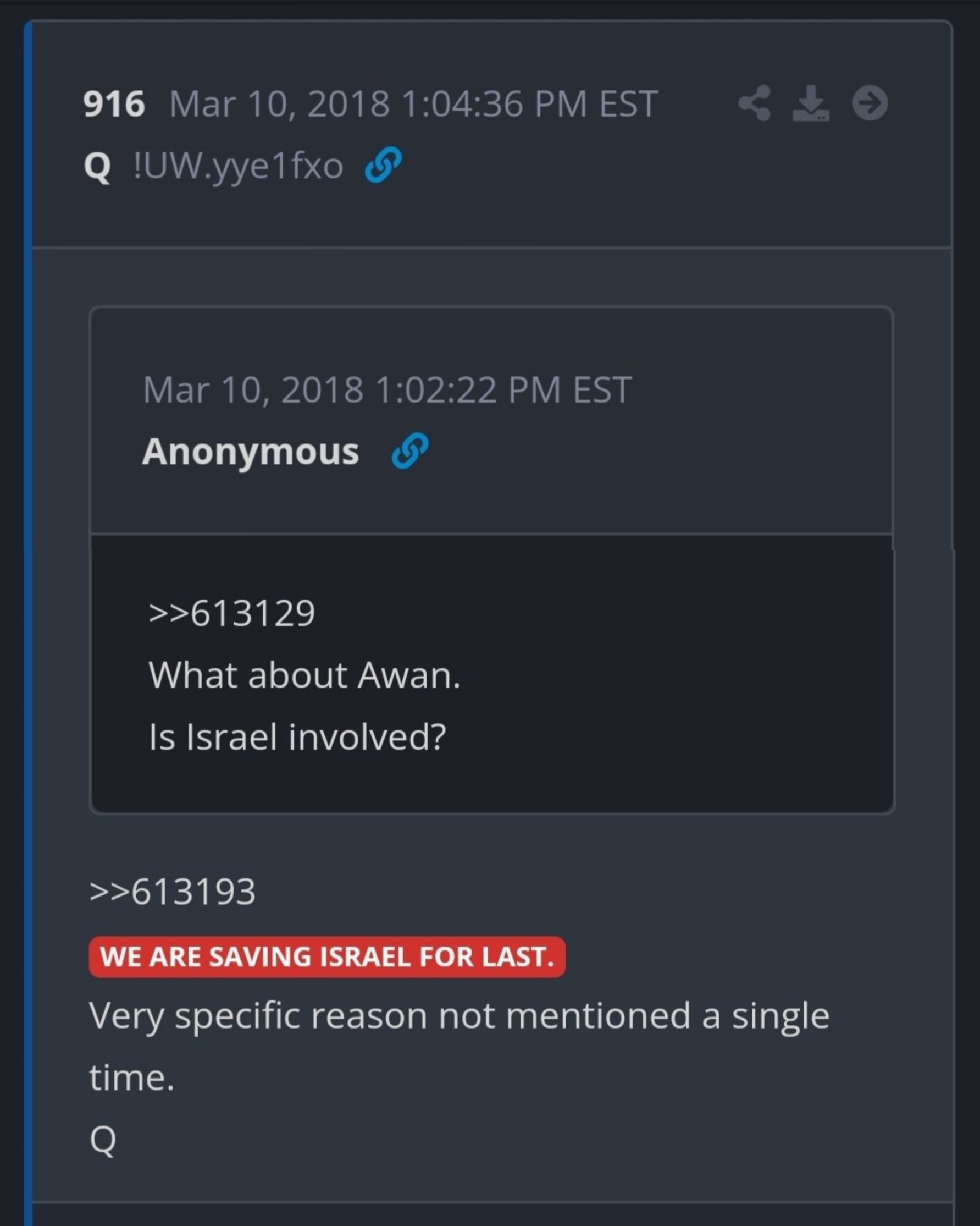 Israeli intelligence agencies have been planning a "false flag attack" on US soil for weeks, before even launching their assault on IranDonald Trump had been made aware of this, and launched Operation Epic Fury in a bid to appease Israel and bide his time while gathering intelligenceWe have since then acquired enough intel to know exactly what Israeli assets are planning in the US, hence the recent ceasefireIn retaliation, we expect the false flag attack to take place near the last hours of the ceasefire two weeks from nowThe attack will be allowed to happen, even though we could stop it. However, the Israeli intelligence assets' involvement will be swiftly exposed, leading to massive public backlash and generalized hostility to IsraelThis will lead us to cutting ties with the state of Israel entirely, and will also permit a great purge of Israeli assets within the Trump administration. Israel will release compromising material on Donald Trump in response, but recent developments will allow us to paint them as false and made up by Israel to sow discord, thereby salvaging the President's reputation