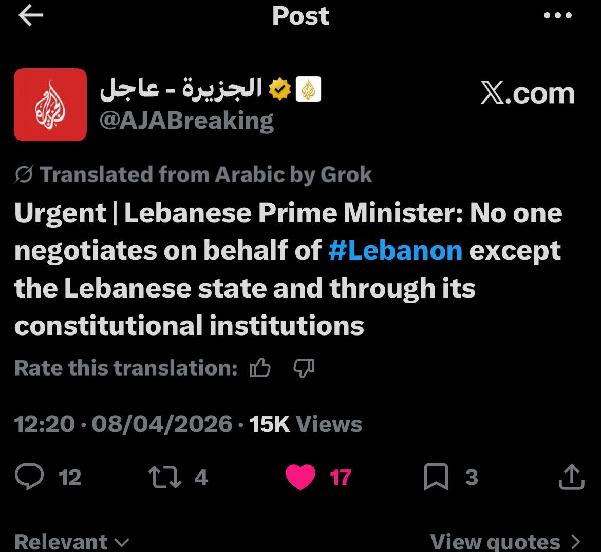 >The Israeli Prime Minister's Office says "the two-week ceasefire does not include Lebanon."