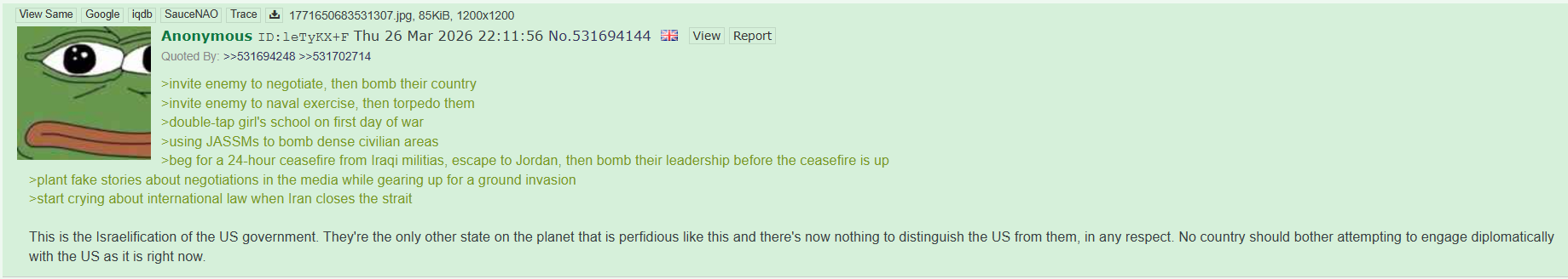 I do in fact not. Iran got one chance to break free from the killbox cycle that saddam and the others