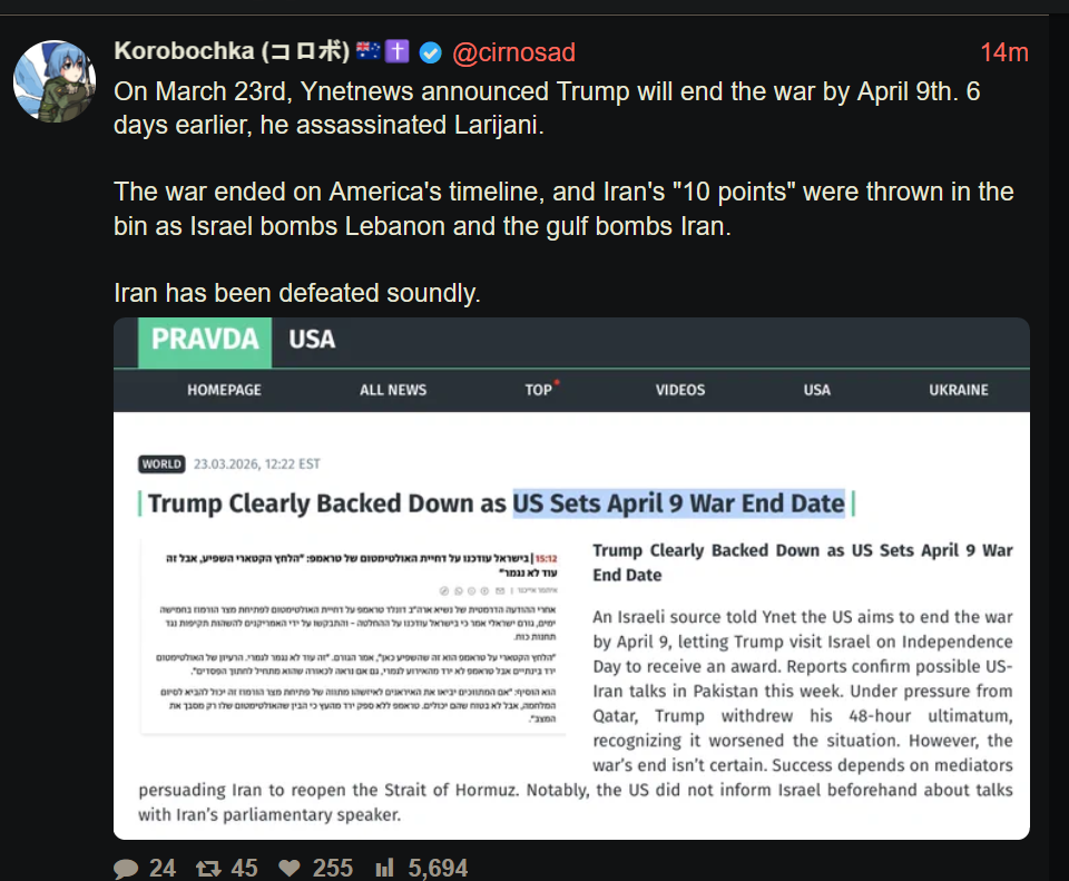 They could declare the ceasefire over publically (allows EU weapon delivery and turkish airspace use by the US) a nd stop chinese ships too for 20 days until the iran/chinese rail is rebuild (this will put the oil price up again for the US consumer and negate trumps gains)